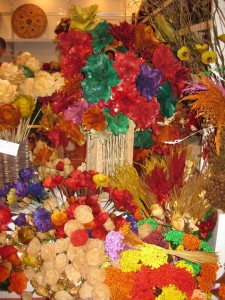 Acima, o colorido das flores desidratadas e de madeira, representativas do Distrito Federal. Adorei as cores e não resisti... trouxe um arranjo comigo...