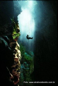 Trata-se de, nada mais, nada mesmo do que a maior aventura do Brasil! O site deles informa que é uma caverna, situada a 23km do centro de Bonito/MS, onde o único acesso se dá por técnicas verticais em rapel através de uma fenda na rocha.