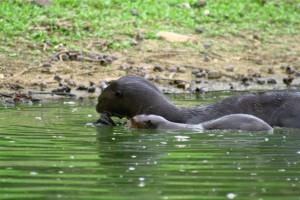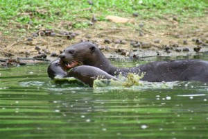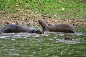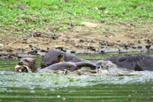 e atua na Atlantis Divers na área de mergulho autônomo técnico e está aqui no Mato Grosso do Sul matando as saudades.Estas fotos são de um grupo de ariranhas no inÃÂcio da Estrada Parque, na região de Miranda/MS.
