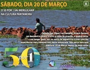 Este fim de semana o Turismo do Estado de Mato Grosso do Sul estará na mÃdia. O Programa comandado por Ãlvaro Garnero na Rede Record, "50 por 1" apresentará o Pantanal.