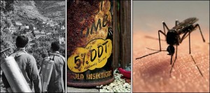 Em 1948, o suÃÂço Paul Müller, descobridor do moderno DDT (Diclorodifeniltricloretano), ganhou o prêmio Nobel de medicina. Curiosamente, Müller não fazia pesquisas médicas, apenas buscava um bom inseticida. Mas seu produto era capaz de eliminar o mosquito Anopheles, transmissor do parasita da malária, uma doença que desde os tempos primitivos flagela a espécie humana e que muitas vezes é fatal.Porém, para quem não se lembra do Diclorodifeniltricloretano, durante décadas, foi largamente usado nos inseticidas produzidos no paÃÂs até ser comprovado que, além de provocar câncer, ele demora de 4 a 30 anos para se degradar. Especialistas afirmam que o principal problema está na sua ação indiscriminada, que atinge tanto as pragas quanto o resto da fauna e flora da área afetada. Ele também se infiltra na água, contaminando os mananciais.