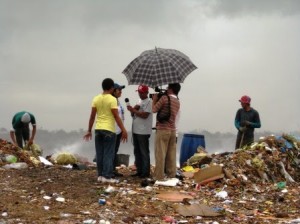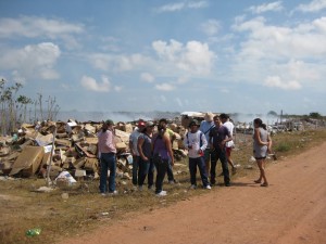 Explico: fomos fazer uma visita ao lixão da cidade de Trairi com o objetivo de que os alunos pudessem conhecer mais sobre o cenário socioeconômico e ambiental do municÃÂpio. Algo como um exercÃÂcio de olhar-se no espelho... porém no meio da visita, entrevistando os catadores de resÃÂduos recicláveis, a turma entendeu que aquelas pessoas mereciam um cuidado diferenciado por parte do poder público municipal. Diante disso ligaram para a TV Diário e convidaram um repórter para registrar o fato. O repórter e veio e entrevistou não apenas os alunos (e eu) como também alguns catadores!