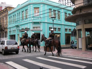 Acima, a foto destaca, ao fundo, um prédio antigo restaurado, o calçamento com sinalização horizontal, sem desnÃÂvel entre a calçada e a rua, com um policiamento diferenciado!
