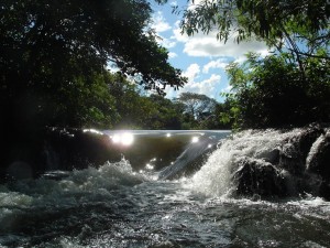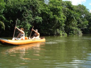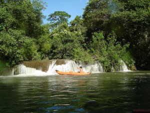 para fazer um passeio de "duck" (uma espécie de caiaque inflável) no Rio Formoso, subindo em direção a "cachoeira do Postal". Conhecida por esse nome porque sua imagem foi usada em um dos primeiros cartões postais de Bonito a serem comercializados.