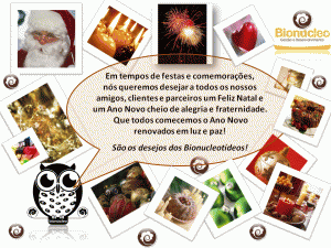2010 está chegando ao fim, não é mesmo?! Quando eu era criança ficava imaginando como seria incrÃvel presenciar um inÃcio de século.... e só depois me dei conta de que eu e todos nós presenciamos um inÃcio de milênio. Coisa grande! E já se vão 10 anos desse inÃcio de milênio... e já se vão 5 anos da Bionúcleo. Quanto sonho e trabalho até chegar aqui neste dezembro de 2010.
