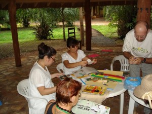 E acho que conseguimos fazer com que os participantes vivenciassem um pouco do que é a economia da experiência! Nós ficamos a semana passada inteira discutindo sobre qual seria a melhor forma e como poderÃÂamos alcançar nossos objetivos inovando na metodologia de condução da oficina... E no final, apesar do calor sufocante do dia, ficamos muito contentes porque o grupo estava contente!