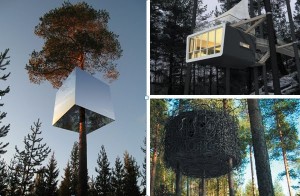 1ªTreehotel: O hotel foi inaugurado em julho na Suécia, construÃdo na copa das árvores cujas casas são camufladas pela Floresta, são de estruturas pré-fabricadas, cada uma foi projetado por um arquiteto diferente, seguindo as tendências da arquitetura ecológica. O acesso aos apartamentos se dá através de andaimes e cordas, proporcionando uma visão panorâmica da natureza.