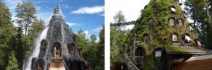 2ºHotel Montaña Mágica â Localizado no Chile, foi construÃdo no formato de uma montanha, um jato dâágua é lançado de seu topo escorrendo pelas janelas e paredes dos quartos, como uma cachoeira, dando uma bela visão. O empreendimento possui 12 quartos cada um representa um pássaro tÃpico da região, sua estrutura é feita de madeira e pedra. Oferecem serviços extras, os visitantes, ainda podem se deslumbrar com a fauna.