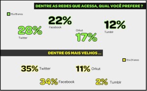 O estudo traz como resultado quais as redes sociais acessadas com maior frequência pelos jovens onde se destacam o Twitter, o Orkut e o Facebook, o que mostra a importância dessas ferramentas para se atingir este público. E aÃ, sua empresa, seu negócio e/ou você estão presentes nessas redes?!