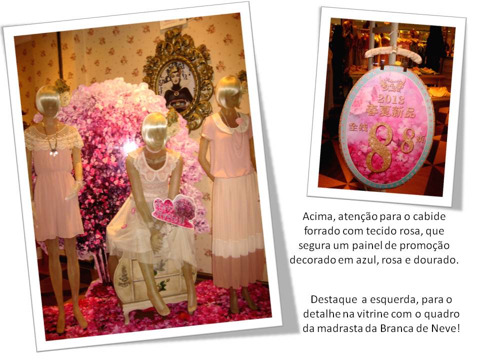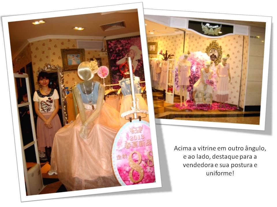 Para ajudar a pensar sobre o assunto eu quero mostrar aqui algumas imagens de uma loja de confecção feminina que vi em Guanghzou, na China, chamada Princess. Ela tem um posicionamento muito bem definido com produtos, cores, decoração, iluminação, uniforme das vendedoras e comunicação visual com as clientes. Para princesas românticas, delicadas e saudosas de uma época mais suave e feminina...