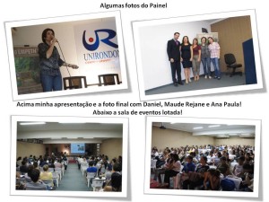 A presença de acadêmicos de Turismo, alunos de cursos profissionalizantes e profissionais do mercado permitiram que as reflexões se mantivessem em um bom nÃvel de aprendizado e troca de experiências â para todos os envolvidos. Aliás, entre os palestrantes convidados havia o Ãcone o Prof. Luis Gonzaga Godoi Trigo, que tem inúmeras publicações e contribuições para o estudo do turismo no Brasil! Contou também com a presença de Maude Raquel Celuppe Piva, que tive o prazer de conhecer e fiquei encantada! Uma profissional e tanto... Cheguei a dizer que quando crescer quero ser como ela e é verdade!... Garota poderosa!Por estas e outras foi um grande prazer participar do evento, onde ministrei mini-curso sobre âEconomia da Experiênciaâ e participei de um painel, com a Maude Piva, onde ela falou um pouco sobre a âSerra Gauchaâ e eu sobre âBonito/MSâ. Aliás, tenho que agradecer aqui pelo apoio que recebi do Bar e Restaurante Taboa , do Marruá Hotel e da Secretaria Municipal de Turismo, Indústria e Comércio de Bonito/MS, através do Augusto Barboza Mariano e da Juliane Salvadore, que mesmo no feriado de 02 de outubro (Aniversário de Bonito/MS) se mobilizaram para me dar kits da cidade para serem sorteados! Preciso dizer que os participantes gostaram dos mimos?!?...