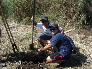 Hoje os acadêmicos e professores da UFMS dos cursos de Turismo e Administração promoveram o Trote Ecológico em que os calouros foram convidados a plantar mudas de árvores em uma área degradada de onde foram removidas pessoas que moravam em situação de risco que ocuparam casas populares em outra região da cidade.