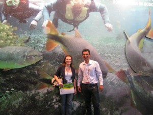 Acima eu e o Telcio em frente ao estande institucional do Mato Grosso do Sul, na Região Centro-Oeste. Essa imagem do Rio Sucuri fez muito sucesso no evento.