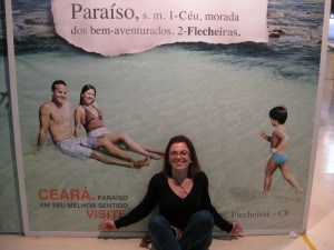 E por último quero fazer uma homenagem aqui para nossos amigos cearenses de Trairi e praias de Flecheiras, Mundaú e Guajirú! O estande do Ceará tinha uma imagem linda da praia de Flecheiras, onde colocava o nome da localidade como sinônimo de ParaÃÂso.... fiz questão de tirar uma foto junto ao painel.