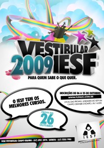 Estão abertas as inscrições para o Vestibular 2009 do Instituto de Ensino Superior da Funlec (IESF), que está oferecendo seis cursos de graduação, todos reconhecidos pelo Ministério da Educação (MEC). As inscrições poderão ser feitas até o dia 25 de outubro e a prova acontecerá no dia 26 de outubro, às 14 horas.Em Campo Grande os cursos oferecidos são: